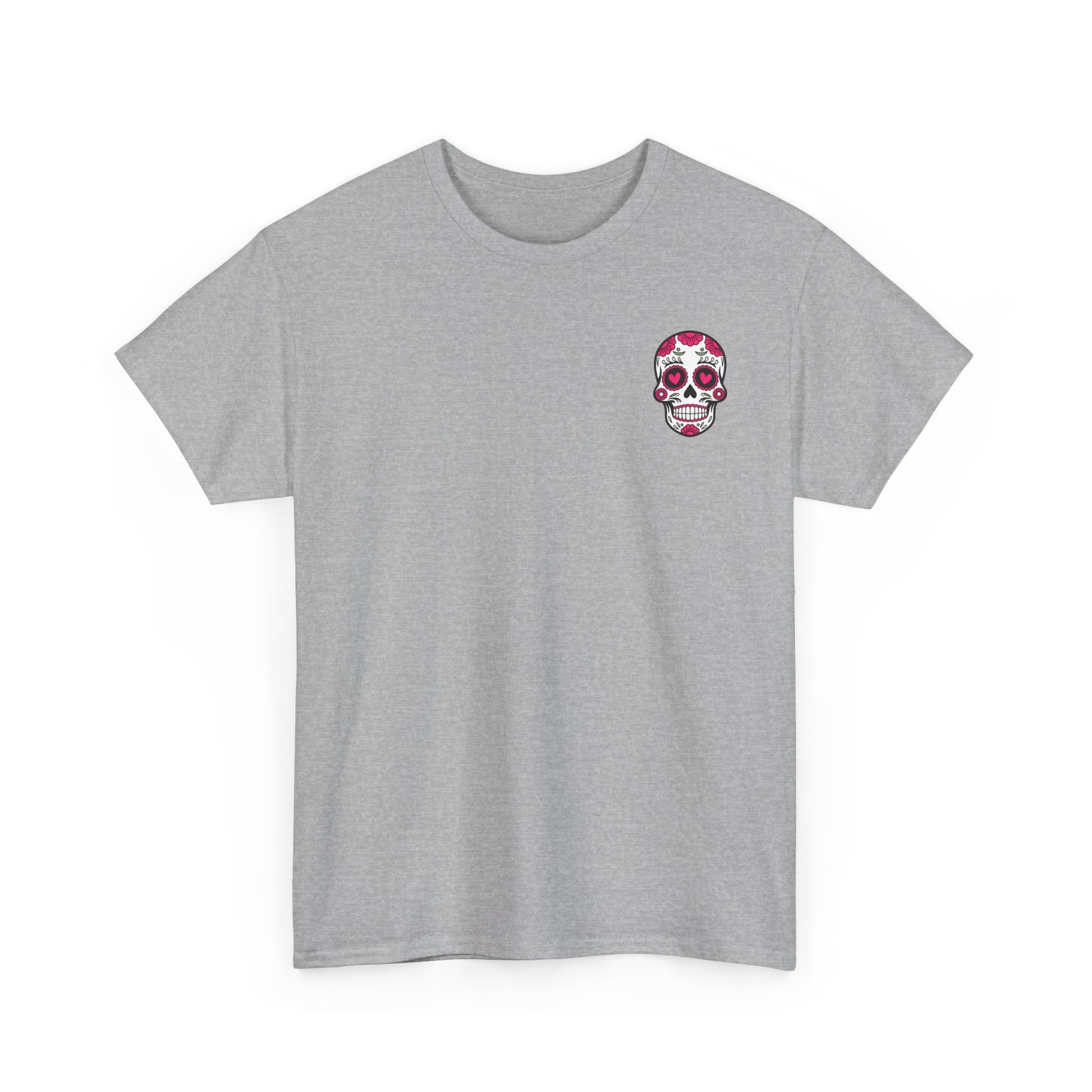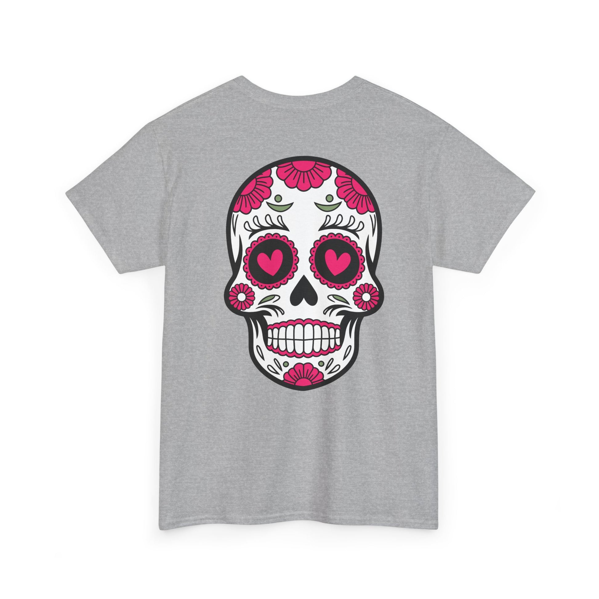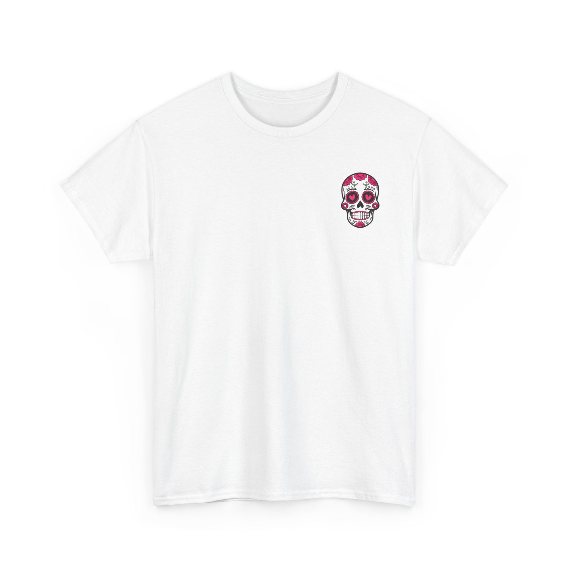 Dia de los Muertos Skull Tee - Cotton T-Shirt with Floral Heart Design